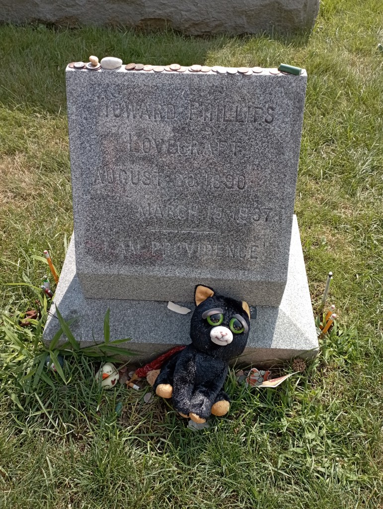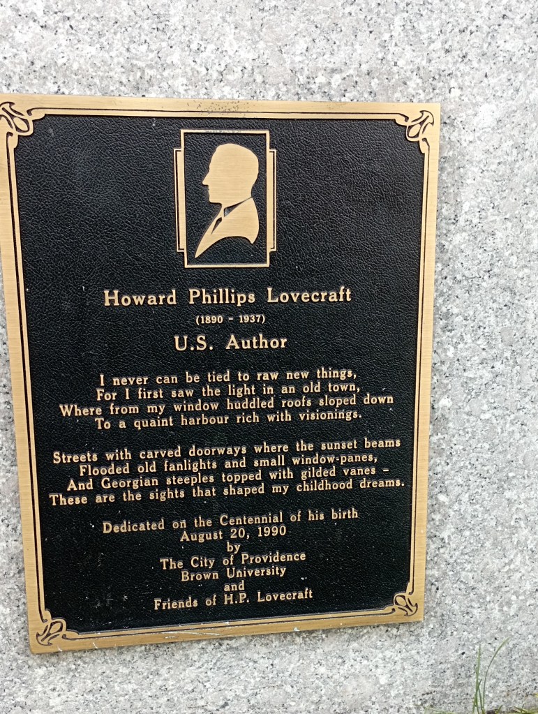 Parcourir les rues de Providence laisse une impression étrange. Deux univers semblent coexister sans se rencontrer, séparés seulement par quelques blocs. HPL, lui, demeure au calme dans le très beau cimetière de Swan point. Une simple plaque sur le campus rappelle qu’il était un enfant de Providence. La maison dans laquelle il vécut lors de ses années en Nouvelle-Angleterre est toujours debout. Elle est habitée et n’est pas visitable. On ne sent en réalité pas un grand engouement autour de l’auteur, aucune réelle envie de le mettre en avant. (Il paraît qu’il existe une statue de lui quelque part, mais je ne l’ai pas trouvée…)